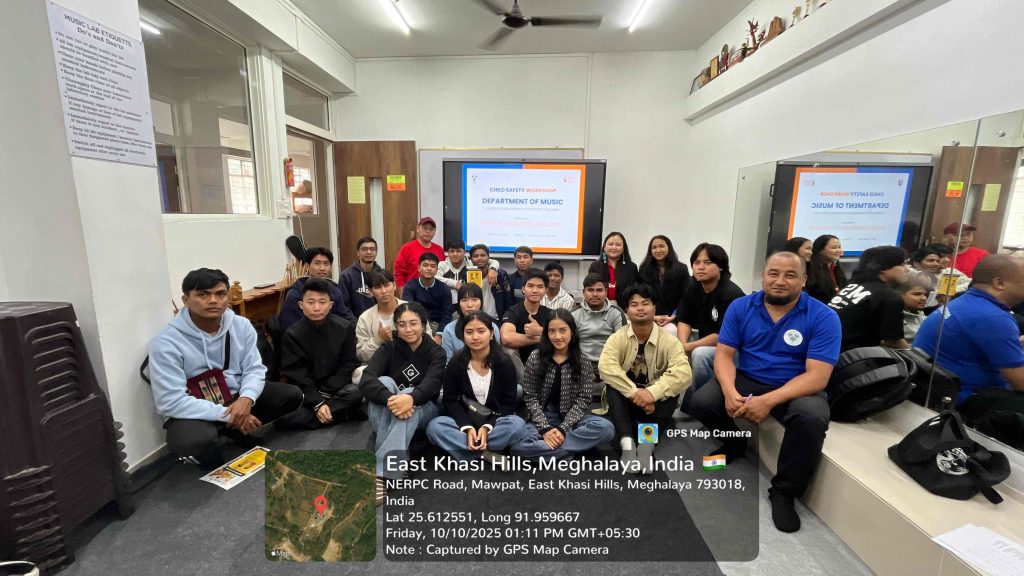 The Department of Music at Martin Luther Christian University (MLCU), Umsawli, organized a Child Safety Workshop on October 10, 2025. The workshop was held at the Umsawli campus from 9:30 AM to 1:00 PM. It was facilitated by Ms. Shannon Massar and Ms. Peacefully Marsharing, a well-known social worker and expert in the field of Child Protection and Personal Safety Education for children and adolescents from Faith Foundation, Shillong.