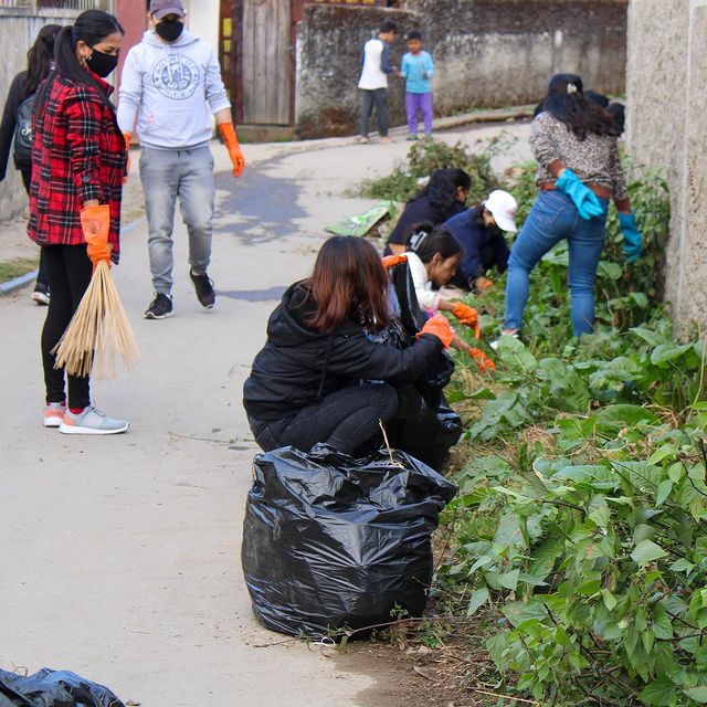 Students and faculty taking part in the cleaning drive of areas in Dongktieh, Nongrah on December 2, 2022. The event was organized by the Green Footprints Club, the Department of Environment and Traditional Ecosystems and the Centre for Counselling.