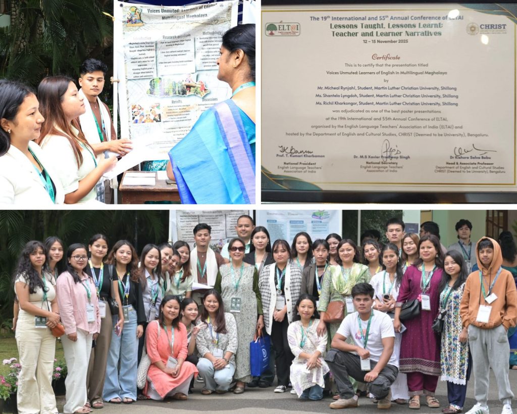 Students from the School of Languages and Cultural Communication (SLCC) of Martin Luther Christian University participated in the 19th International and 55th Annual Conference of the English Language Teachers’ Association of India (ELTAI), held from 12–15 November 2025 at CHRIST (Deemed to be University) in Bangalore. The conference was organized by ELTAI and hosted by the Department of English and Cultural Studies of CHRIST University under the theme “Lessons Taught, Lessons Learnt: Teacher and Learner Narratives.”